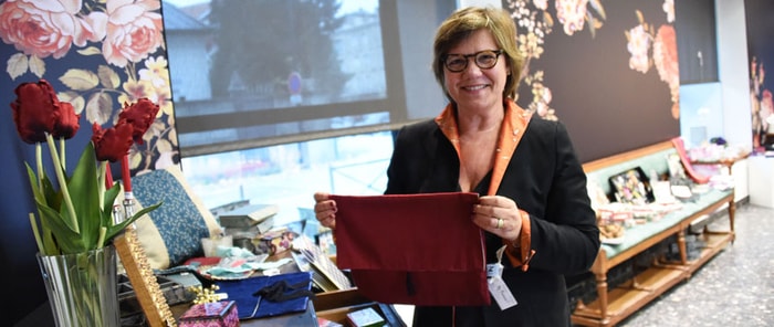 Le marché de Noël du Mise, c’est un large choix de châles, d’étoles, de serviettes ou de nappes, avec, là encore, une entreprise du coin, George G d’Ungersheim, qui présente sa création fleurie « Bonnes Herbes ». Au gré de la visite, les ambiances changent, l’esprit demeure en offrant le plein d’idées cadeaux pour la chambre à coucher ou la salle à manger, mais aussi d’idées déco sur la thématique de Noël. Le musée tient à mettre en avant des créatrices mulhousiennes, comme la fidèle Catherine Bihl, avec ses sculptures pleine d’exotisme, ou, pour la première fois, les créations textiles de Françoise Schmuck, qui présente des coussins et des pochettes à lingerie, très tendance. Bref, le marché du Mise rime avec embarras du choix !