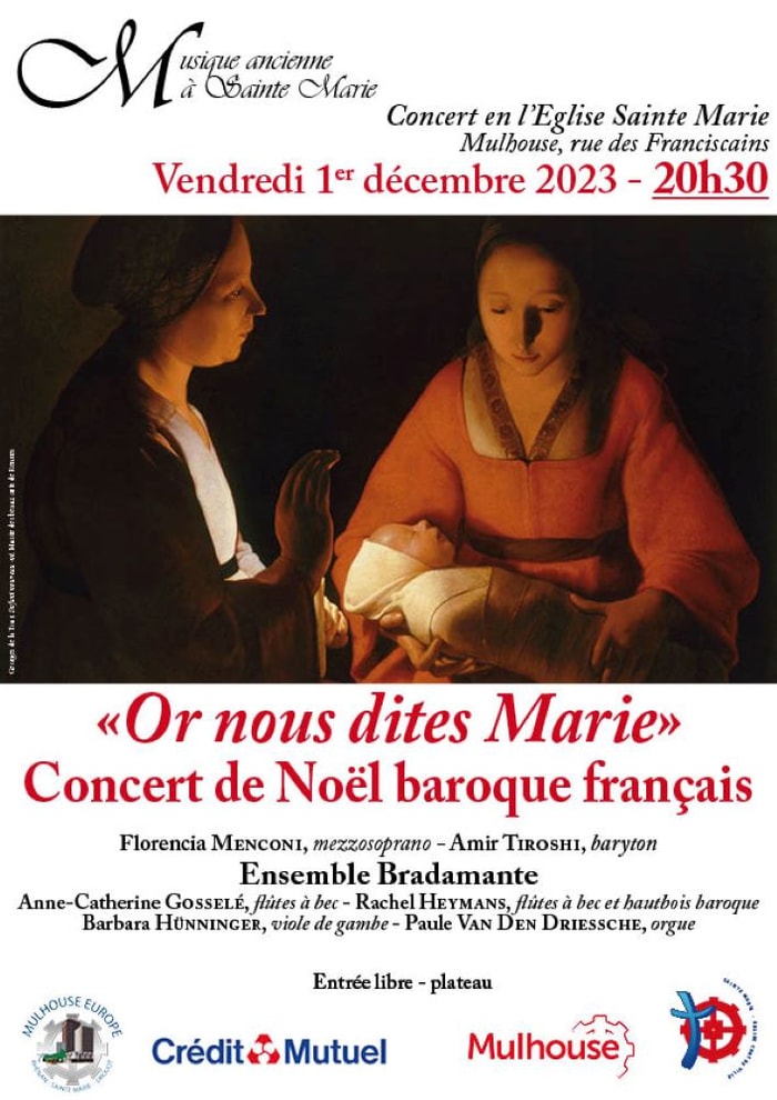 Ce programme de musique française est dédié au temps de réjouissance et de réflexion qu’est la période de l’Avent, les quatre semaines précédant Noël. Sans présenter un programme de musique exclusivement religieuse, l’Ensemble Bradamante, accompagné pour l’occasion de la mezzosoprano Florencia Menconi et du baryton Amir Tiroshi, cherche tout d’abord à émouvoir son auditoire, mélangeant couleurs sonores et atmosphères en tirant avantage de son instrumentarium simple mais varié. En leitmotiv et titre de ce programme on retrouve la chanson de Noël traditionnelle arrangées de nombreuses fois « Or nous dites Marie », plaçant cette fois non pas le divin enfant au centre d’un concert de Noël mais la voix de Marie, son dernier mois de grossesse et les événements satellites à la naissance du Christ. De même, le motet de Campra « Caeli enarrant Gloriam Dei » exprime la réjouissance et la gloire que chacun peut trouver dans les détails du quotidien, les petits événements de la vie. Le Motet de Jean-Baptiste Morin célèbre la beauté des étoiles ornant bien sûr le ciel de la nativité mais aussi (et surtout !) celui de chaque nuit où chacun d’entre-nous daigne lever les yeux.